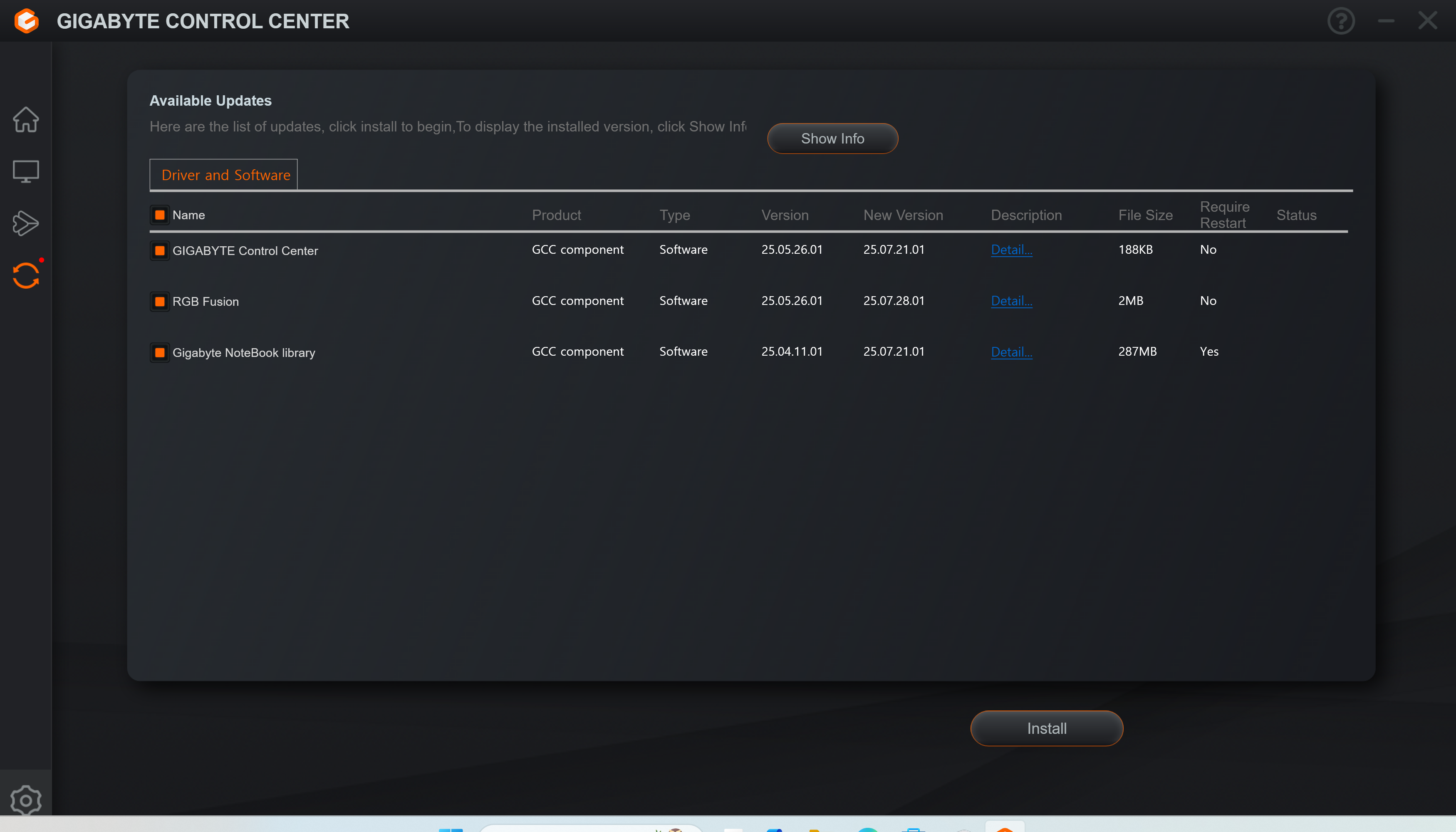 VGA, Gigabyte Control Center, Firmeware등이 있는데 GCC부터