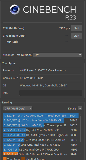 [PC] Cinebench r23: 5988 @3500X, DDR4 2666 본문