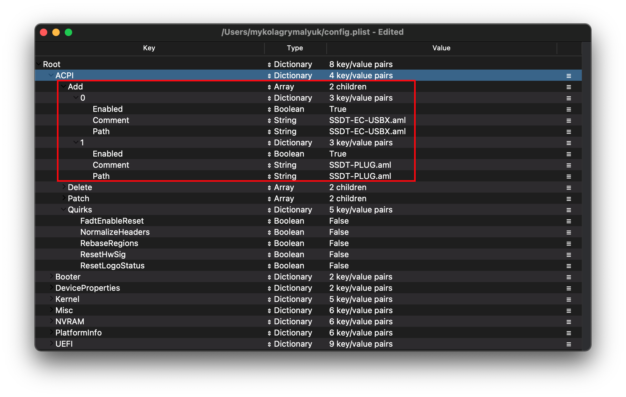 대충 정리하고 ProperTree로 clean 후 저장